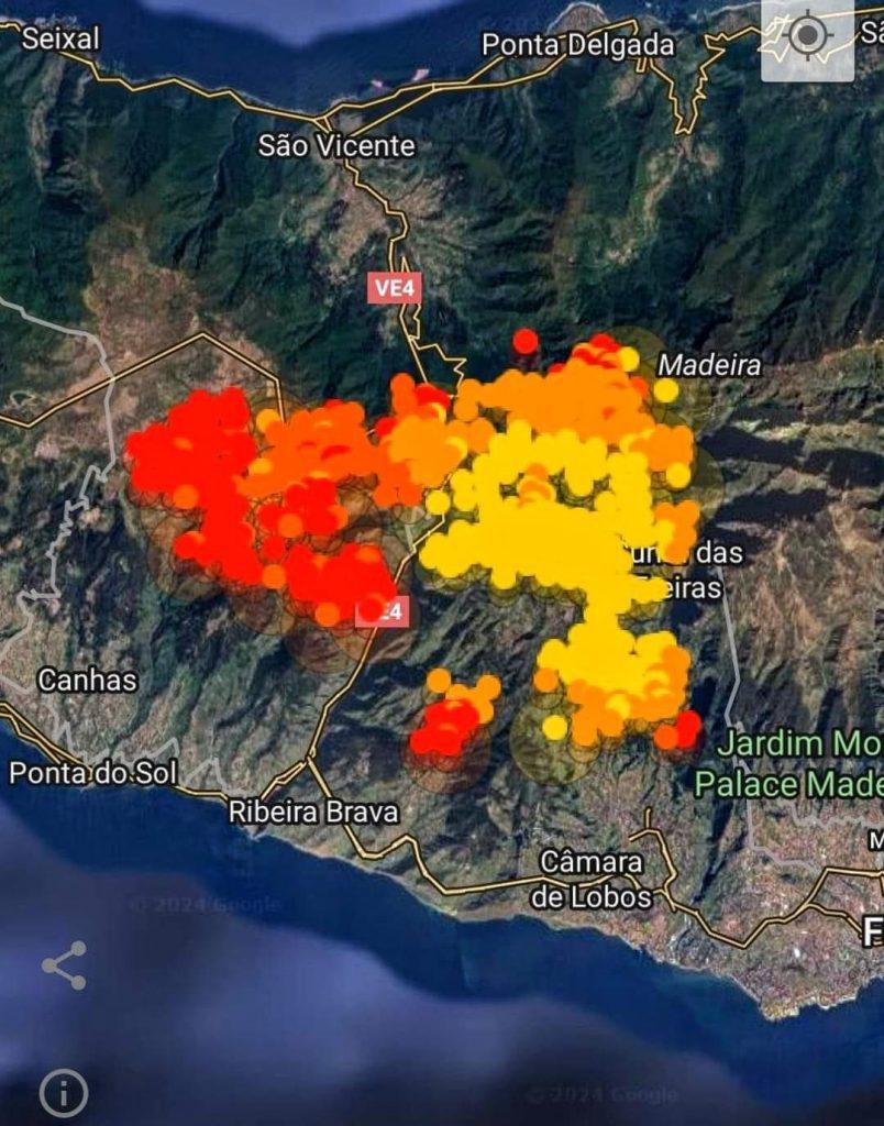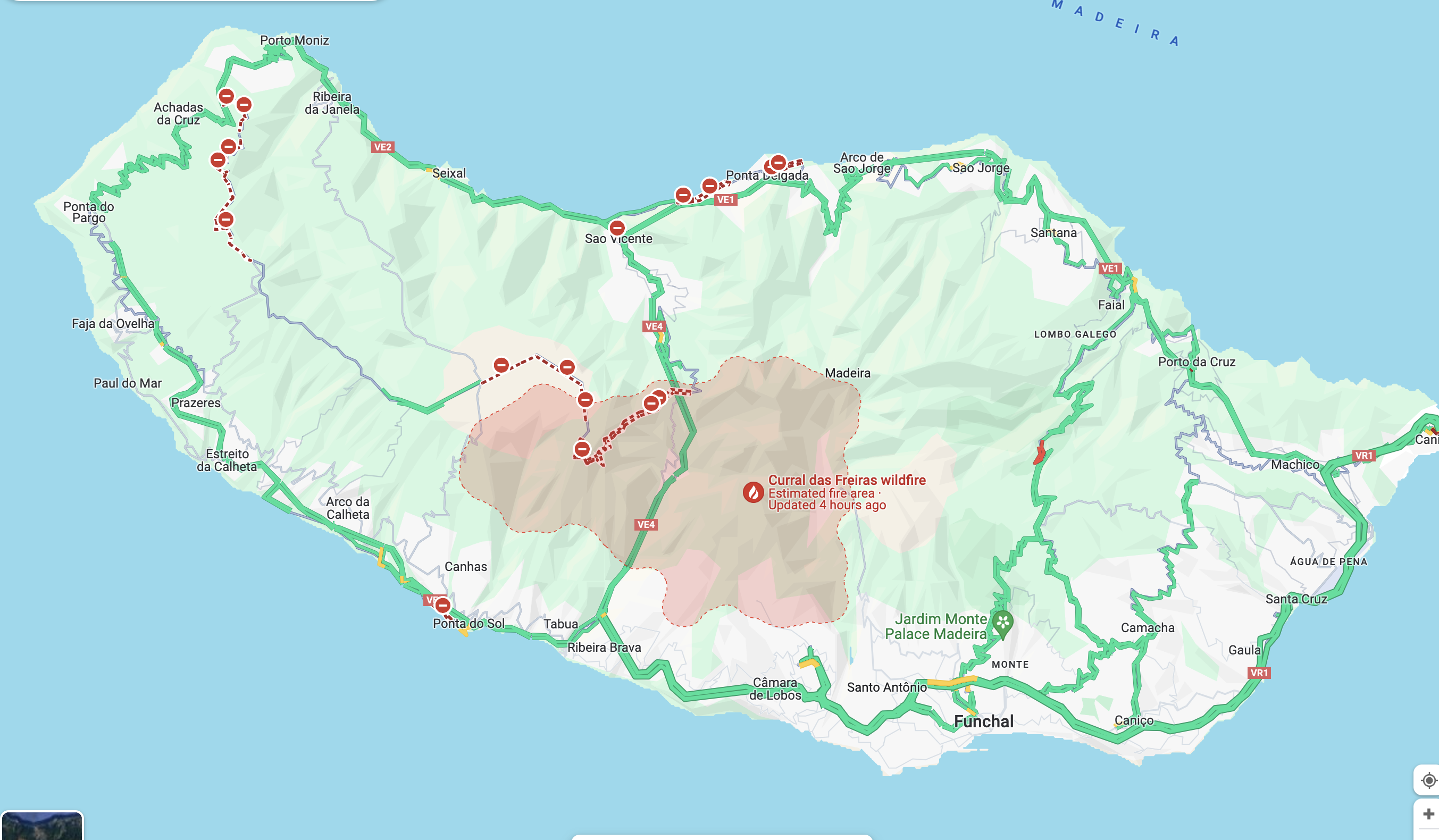 Svarbi informacija apie gaisrą Madeiroje🔥. Žemėlapyje (esančiame apačioje) galite matyti, kurios teritorijos yra saugios ir gaisras jau nuslopęs ir vietas, kuriose gaisras dar aktyvus ir plečiasi: