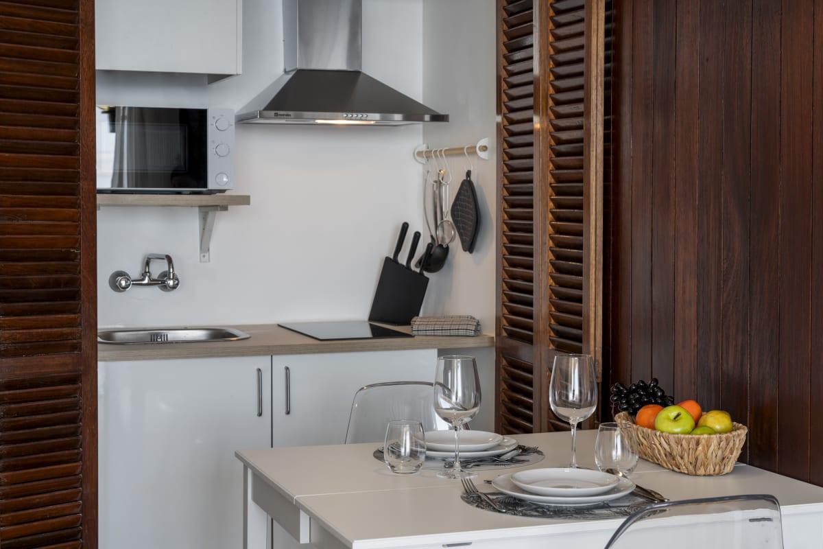Tai jaukūs studijos tipo apartamentai – ieškantiems patogios ir nebrangios ilgalaikės nuomos Madeiros širdyje – Funšalyje. Apartamentuose rasite: dvigulę patogią lovą, virtuvėlę su visais reikalingiausiais prietaisais, svetainę su valgomojo zona ir balkoną su užburiančiu vaizdu į vandenyną. Taip pat yra darbo zona – patogus ir nedidelis darbo stalas, bei vonios kambarys su vonia-dušu. Apartamentai yra nedideli, tačiau yra viskas, ko reikia – o ypač – nuostabus vaizdas į bekraštį Atlanto vandenyną.![]()