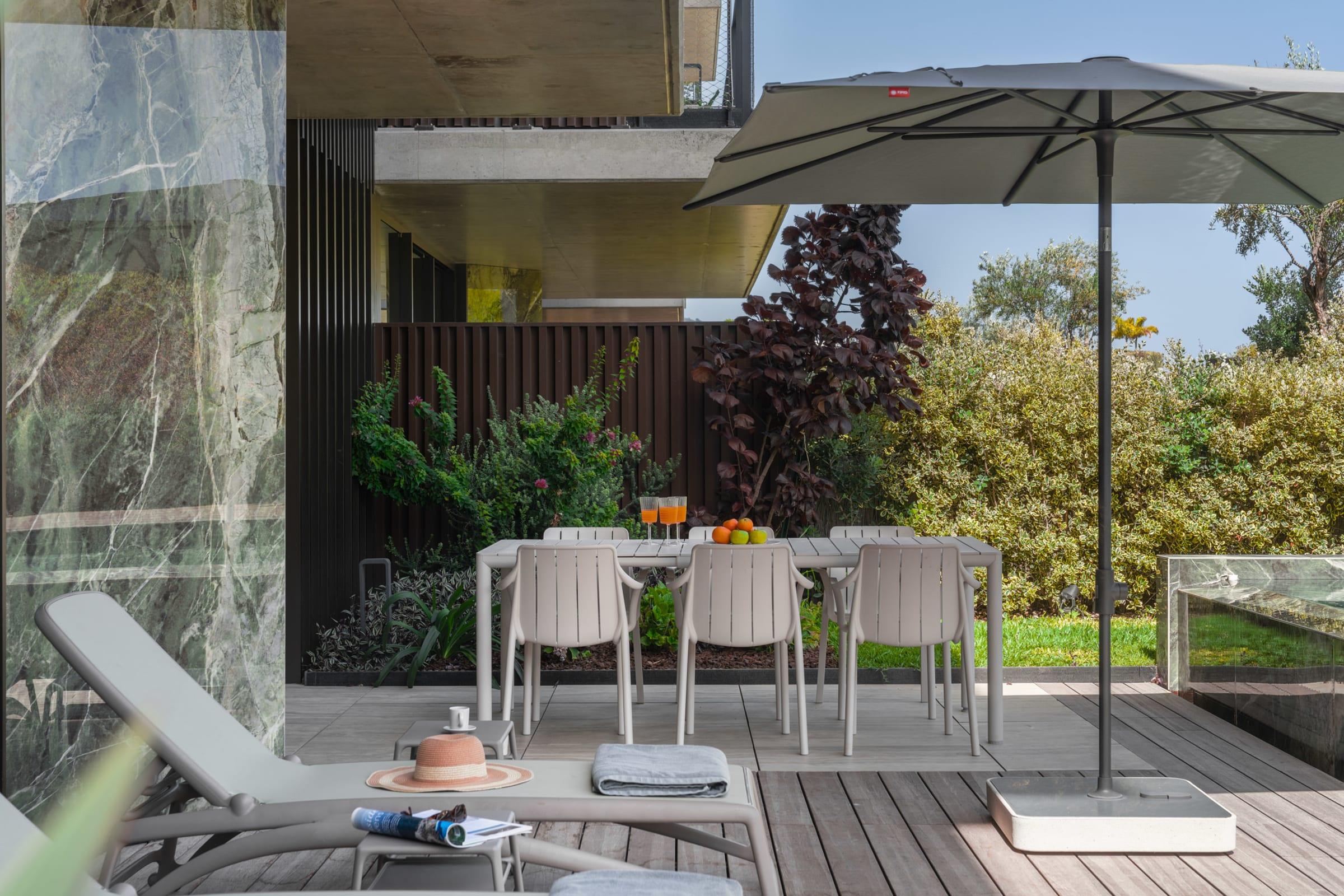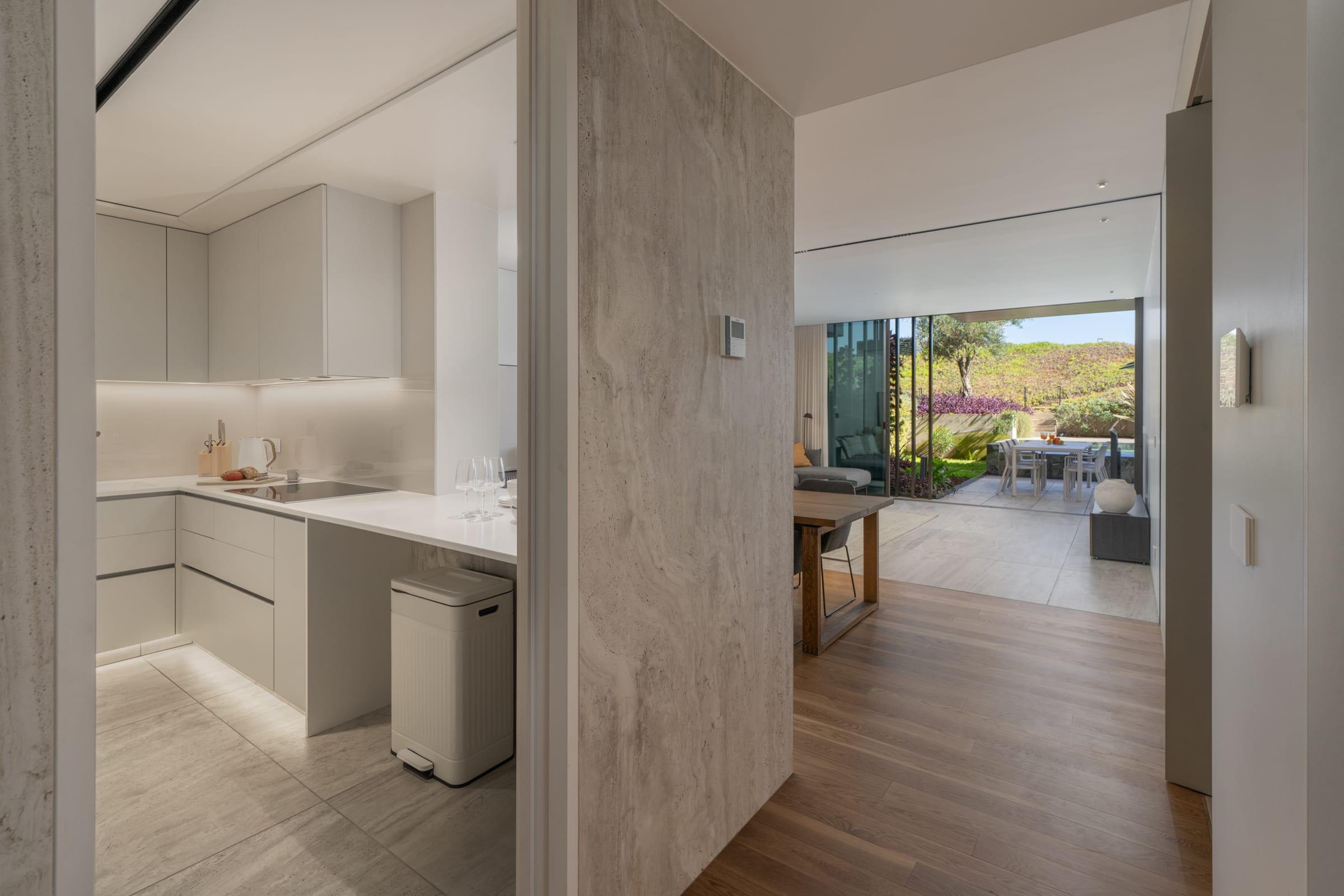 Erdvi atviro plano svetainė ir virtuvės zona kviečia susiburti kartu – vakaroti su taure Madeiros vyno, gaminti vakarienę draugams ar tiesiog ilsėtis. Lauke – jūsų privatus sodas su šildomu baseinu (pagal pageidavimą), o vos už kelių žingsnių – bendri baseinai ir moderni sporto salė.